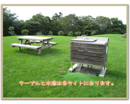 テーブルと水道も各サイトにあるので、何かと便利です。