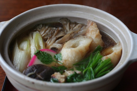 ↓ken坊が頼んだ「きりたんぽ鍋と稲庭うどん」(写真はきりたんぽのみですがw)