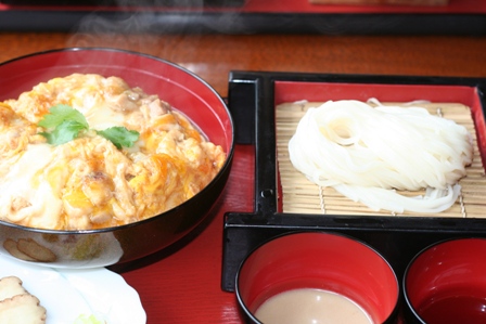 ↓はmieが頼んだ「比内地鶏の親子丼と稲庭うどん」(湯気付き^^)