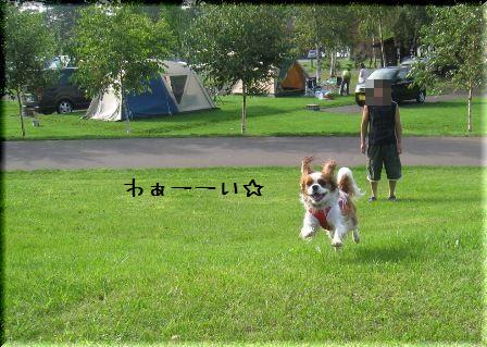 アンコも元気そうで遊びたがっていたので、テント裏のちょっとした場所でボール遊び。