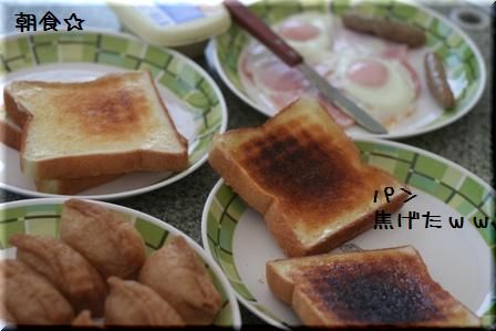 朝御飯は前日に作っておいたお稲荷さんとトースト、目玉焼き。