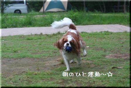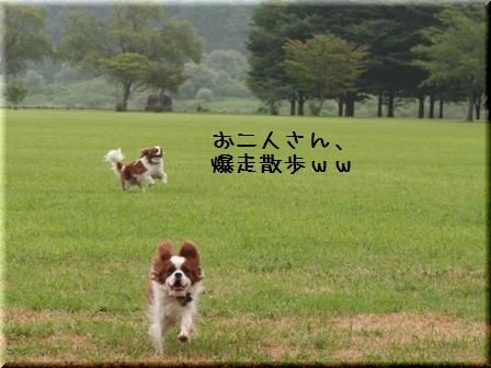 この霧雨の中、ボールに反応してワンワンうるさいくらい張り切ってます。