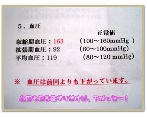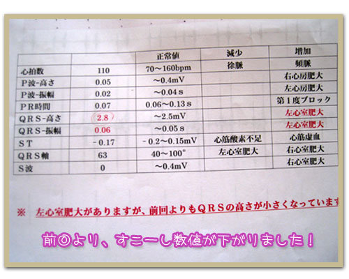 少しですが、小さくなっていて、酸素不足だった数値のところもギリ範囲内に収まる結果に。