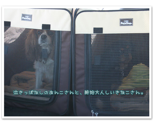 普段、車では自由にさせていたので、あんこさんはご不満なようです。