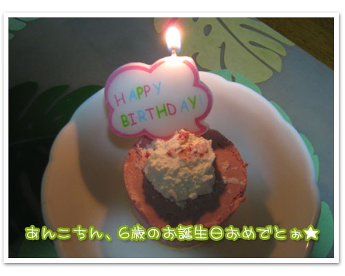 小さなワンケーキ買ってきて、ささやかにお祝いとなりました。