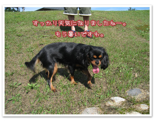 車の中で冷房が効いていても、日が当たると黒毛が暑いから、またハァハァ。