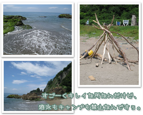 ちょっと波も高いし、すぐ深くなる感じなので、きっと遊泳禁止なのかな。