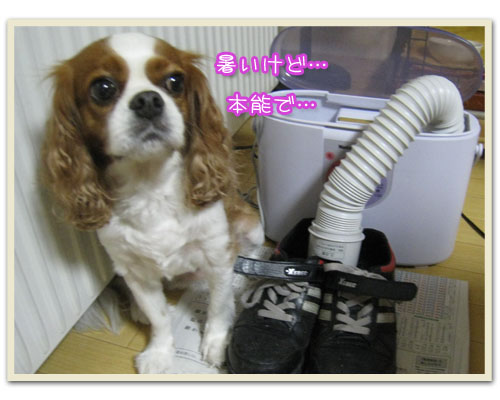 靴までべちゃべちゃになり、次の日に履けないと困ると言うので、布団乾燥機の機能で乾かすことに。