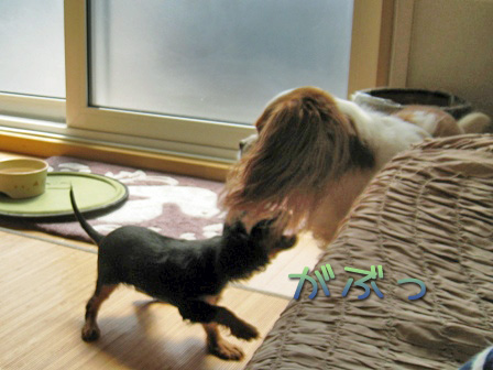 匂いを嗅ぎに来たり、遊びを吹っ掛けたりでアンコに唸られてますー