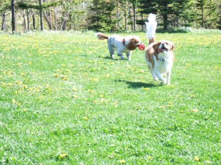 ぽんちゃんのボールでアンコも便乗して遊びます。