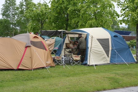 隣の方も我が家よりちょっと早い到着だったようで設営中。