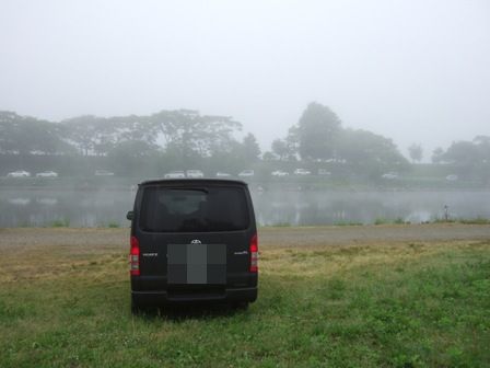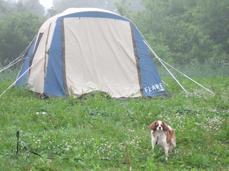 まだ霧も残ってる中、テント撮影。(アンコ付w)