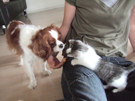 ワンコとニャンコ生活に少し慣れてきてたところみたいです。